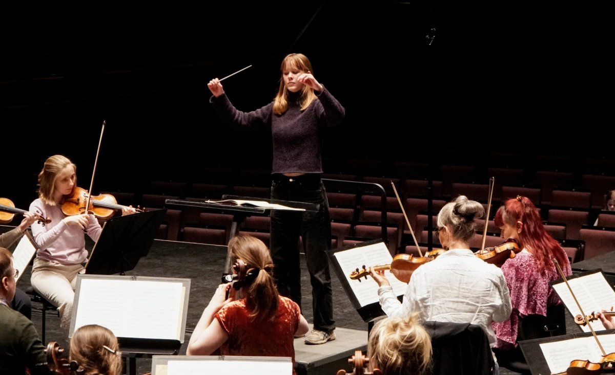 Helga Björg Kjartansdóttir víólunemandi tók þátt nú í ár og það er skemmst frá því að segja að hún fékk að stíga á stjórnendapall á lokatónleikunum og stjórnaði þar 3ja þættinum úr Sinfóníu nr. 40 í g-moll eftir W.A. Mozart. Til hamingju Helga Björg!