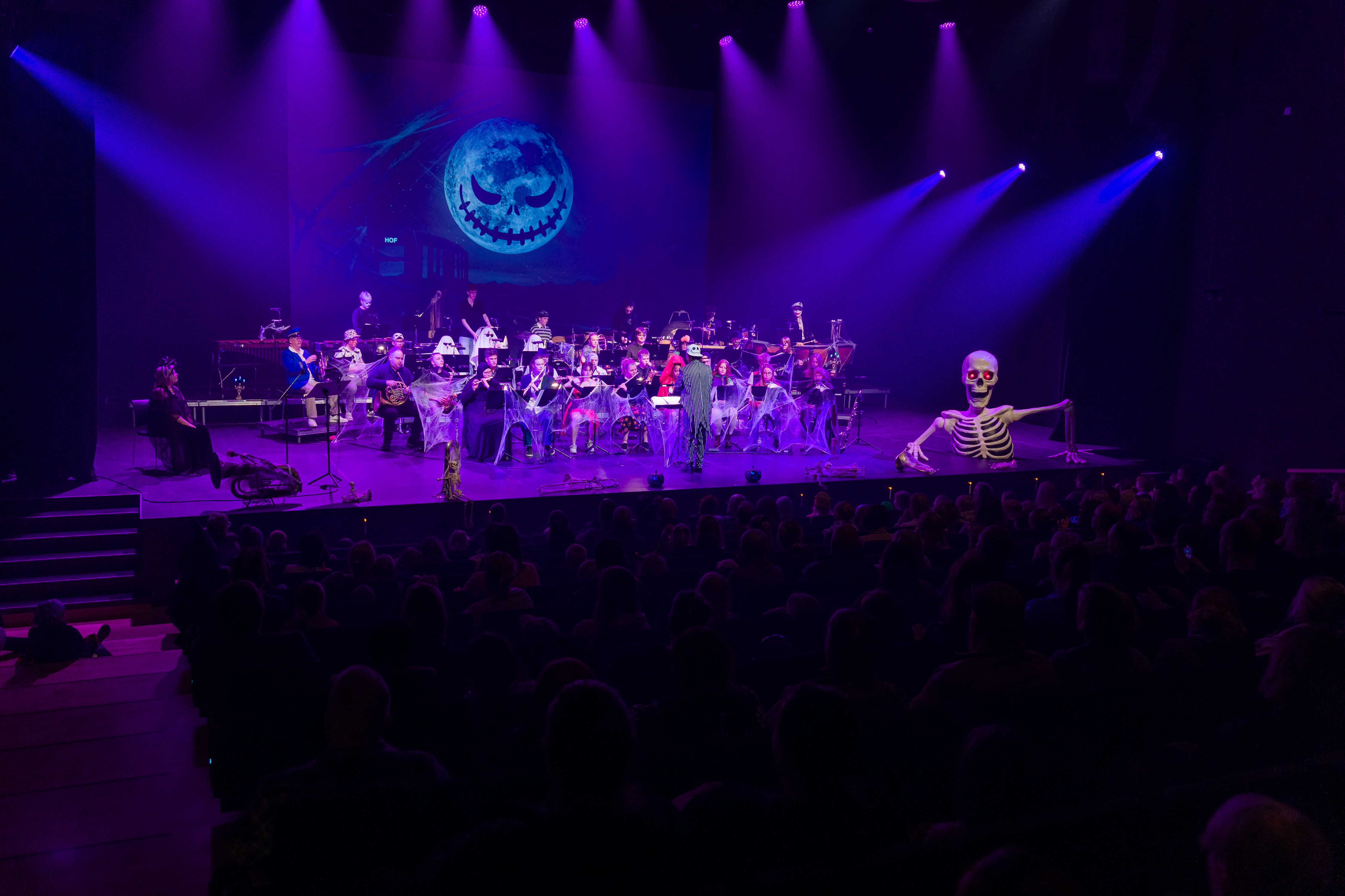 Í síðustu viku héldu blásarasveitir Tónlistarskólans sína árlegu Hrekkjavökutónleika fyrir fullu húsi. Draugasaga, draugaleg tónlist og draugalegar skreytingar í Hamraborg vöktu mikla lukku og það var svo sannarlega stemming í salnum. Öll sem komu að þessum tónleikum geta verið stolt af sínu framlagi. Hér fyrir neðan má sjá myndir frá tónleikunum.