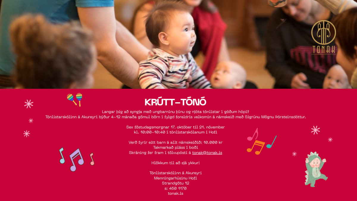 Tónlistarskólinn á Akureyri býður 4-12 mánaða gömul börn í fylgd foreldris velkomin á námskeið með Sigrúnu Mögnu Þórsteinsdóttur.