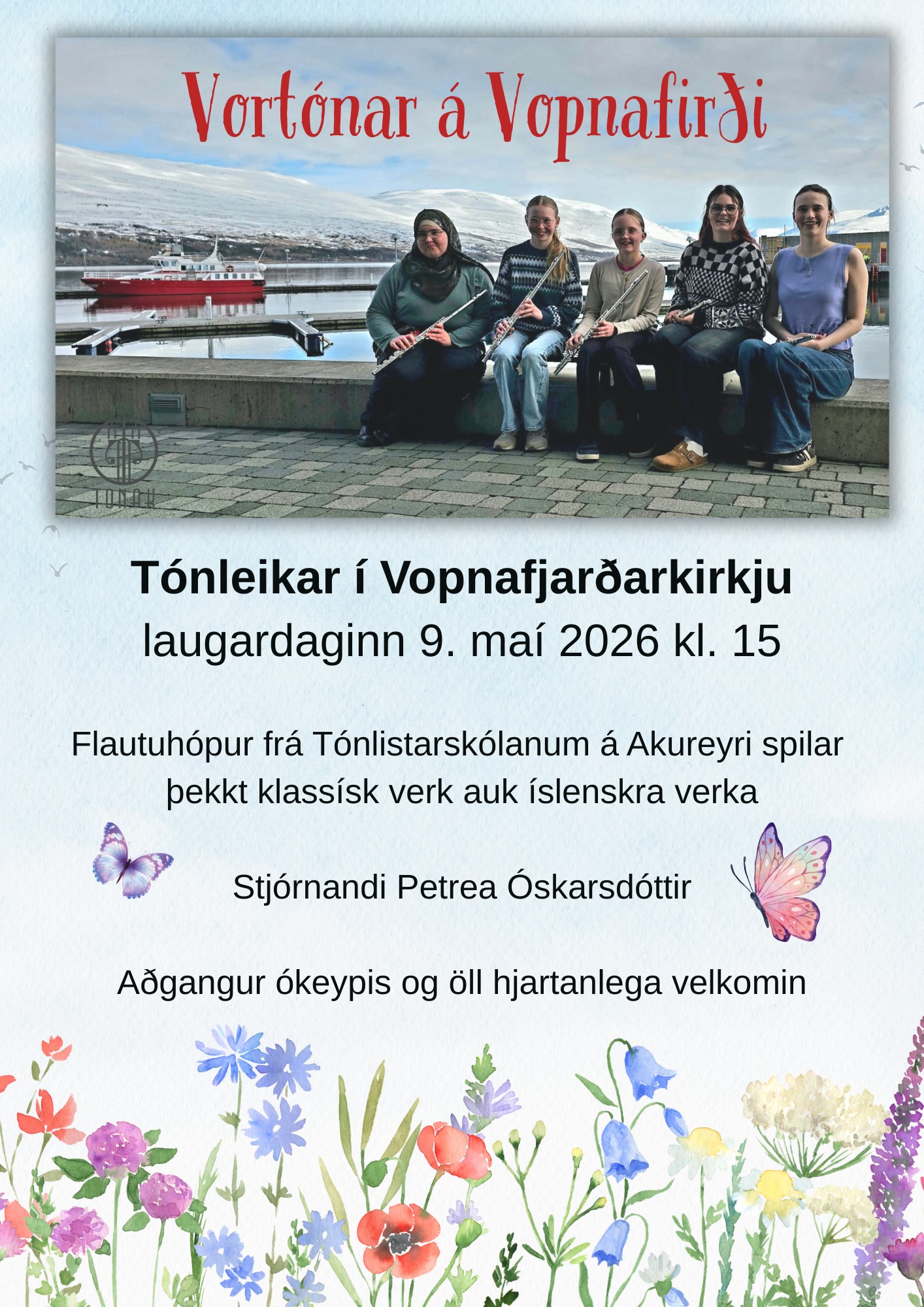 Laugardaginn 9. maí kl 15:00 heldur flautusamspil Tónlistarskólans á Akureyri tónleika í Vopnafjarðarkirkju.